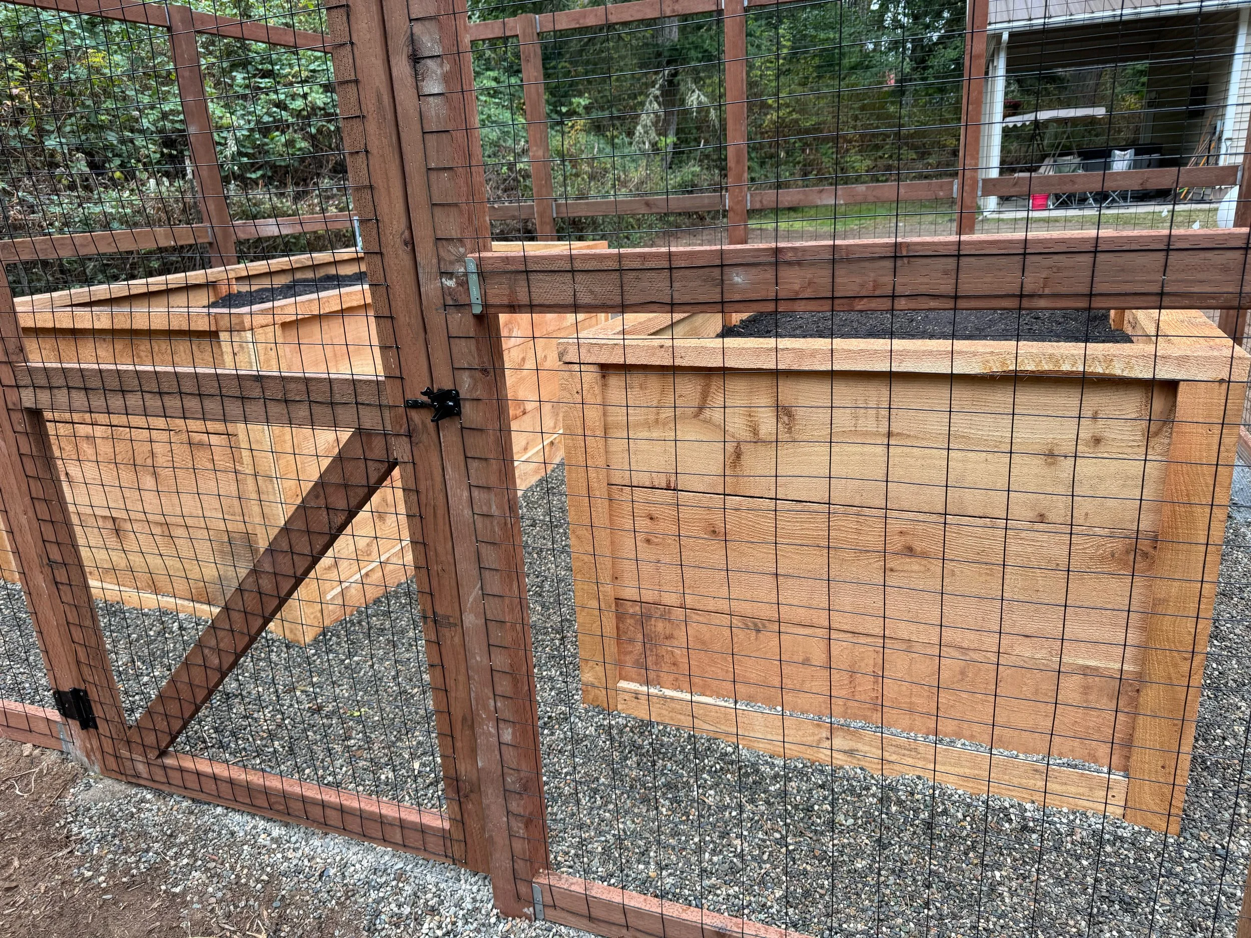 Custom designed and built for comfort, and to maximize your growing space while keeping out the critters, big and small.